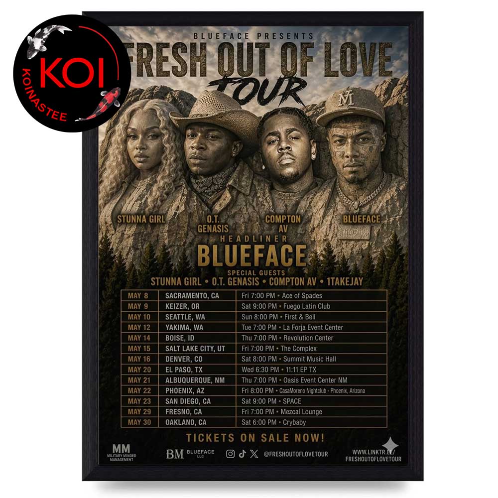 Ready to transform your space with powerful visual storytelling? Scroll up and click “Add to Cart” to make Blueface 2026 Tour Dates Fresh Out Of Love Home Decor Poster Canvas a unique centerpiece in your decor today.