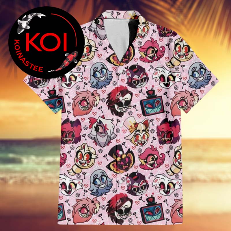 Hazbin Hotel All Demons Chibi Style Pink Pattern Regular Hawaiian Shirt