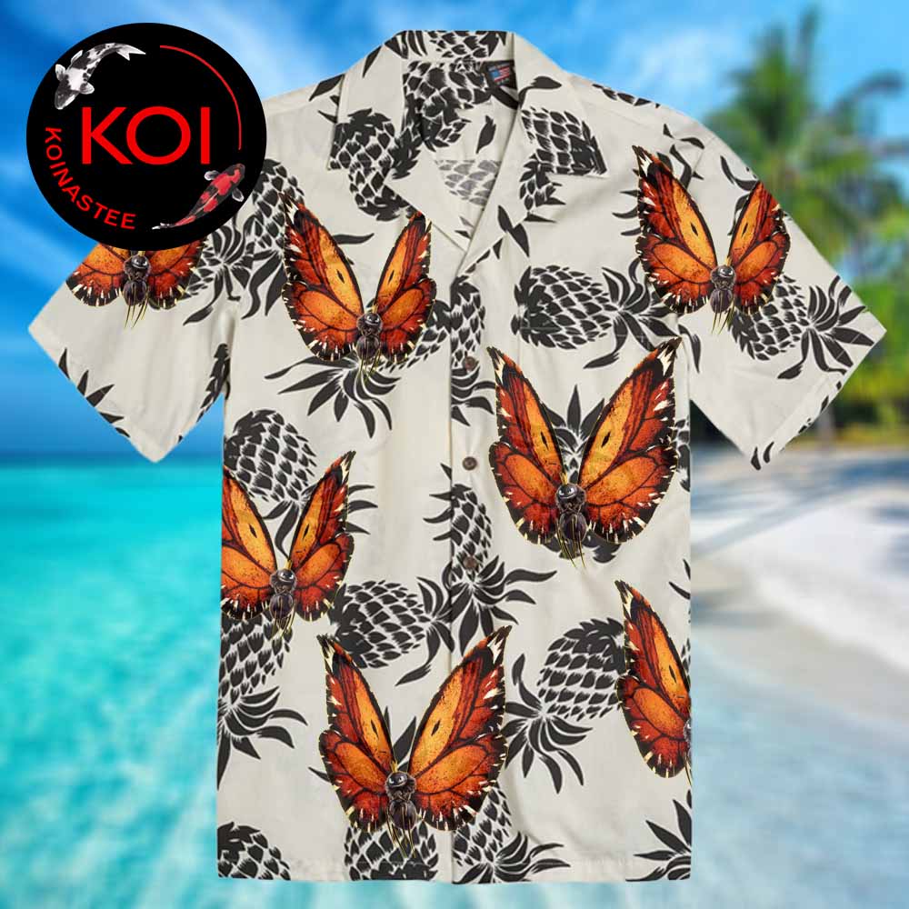 Hoppers Disney Movie Insect King Pineapple Black White Tropical Pattern Hawaiian Shirt