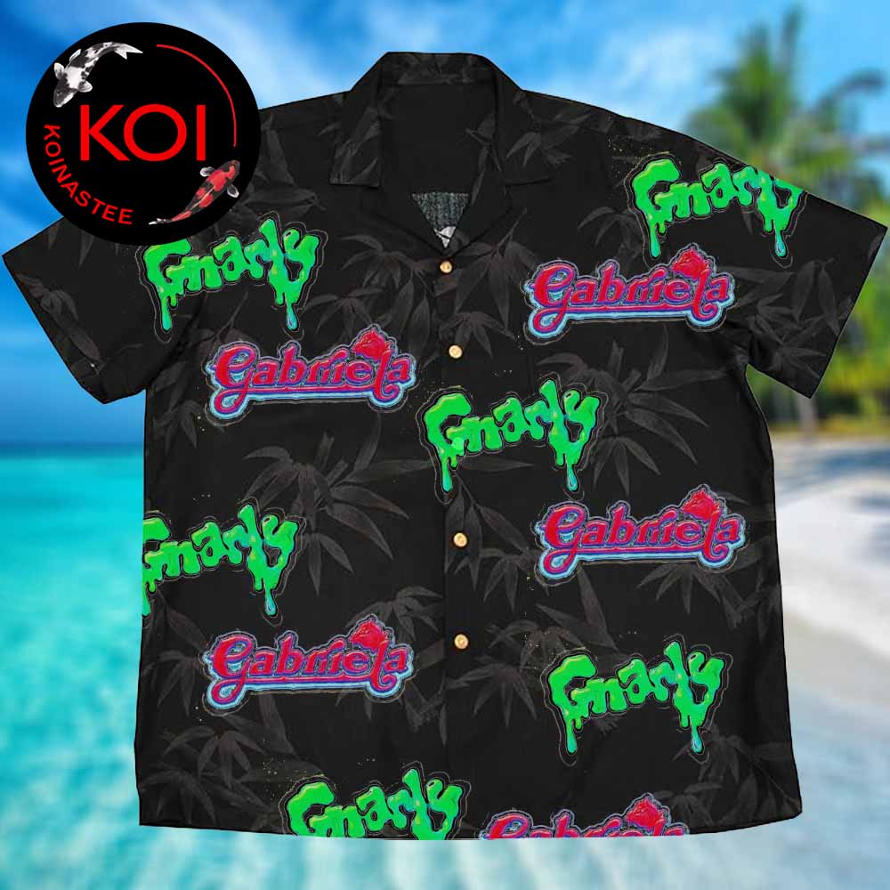 Katseye Gnarly Gabriela Tropical Summer Tree Black Hawaiian Shirt