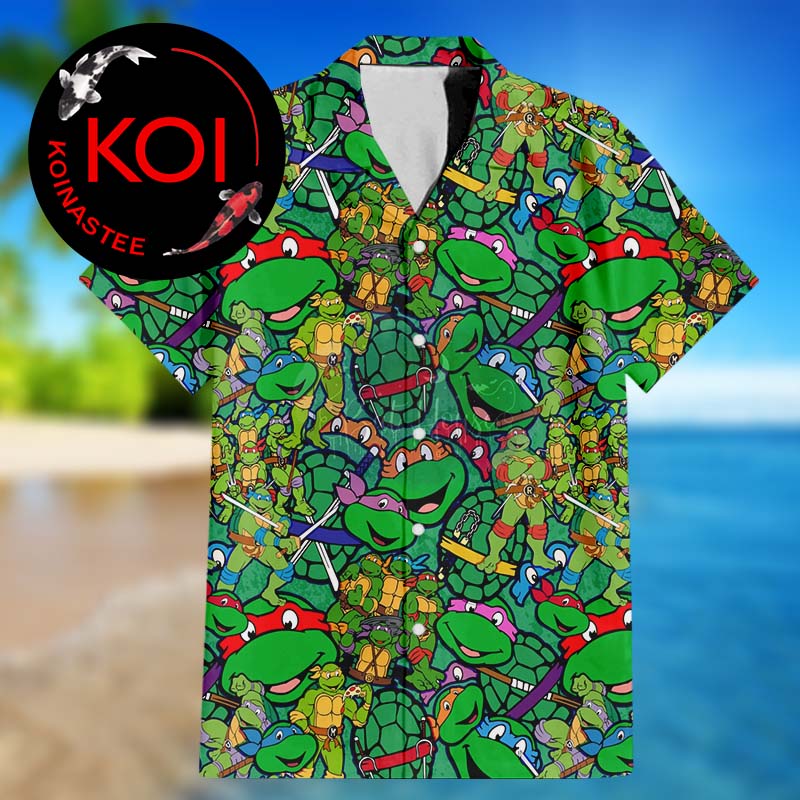 Teenage Mutant Ninja Turtles Leo Raph Donnie Mikey Pattern Green Hawaiian Shirt